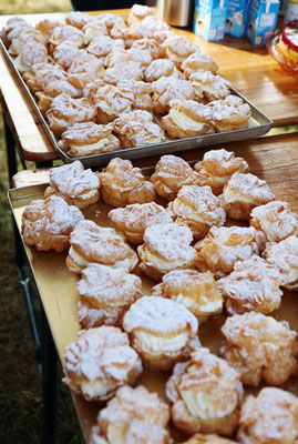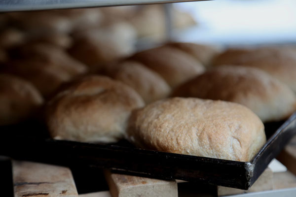 frisch gebackenen Brötchen und Salaten,